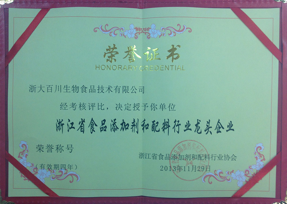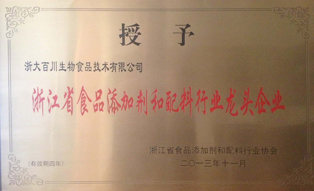 Leading Enterprise in Food Additive & Ingredients Industry of Zhejiang Province