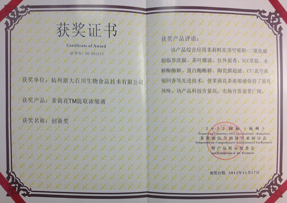 Innovation Award of Jasmine Flower Concentrate