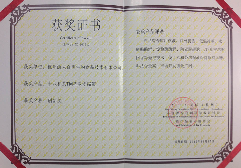 Innovation Award of Eighteen Tea Concentrate